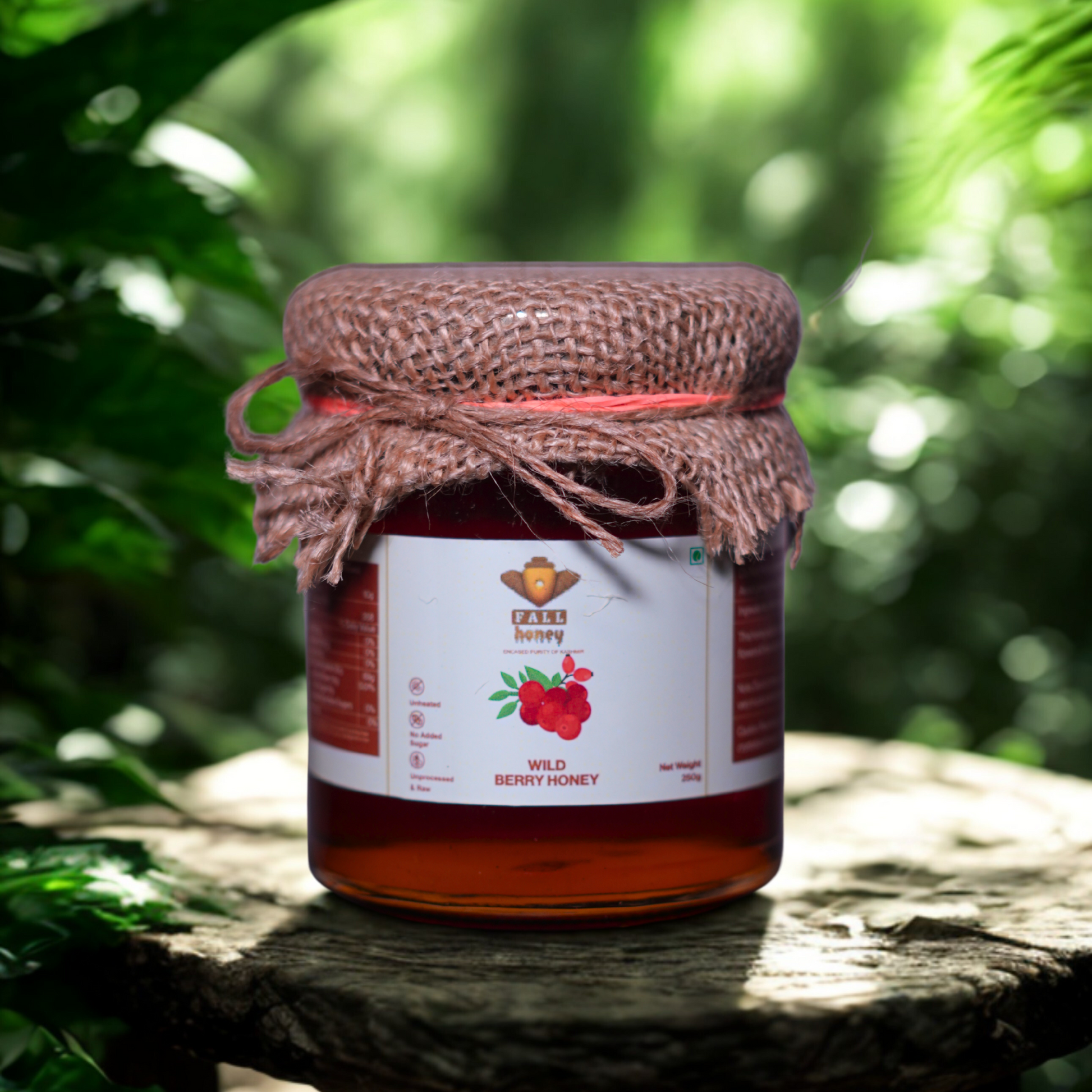 Bursting with the natural goodness of antioxidant-rich wild berries and pure honey, this delicious blend is as healthy as it is flavorful. Our Wild Berry Honey combines the tangy sweetness of wild berries with the soothing richness of raw honey โ a perfect addition to your wellness routine!